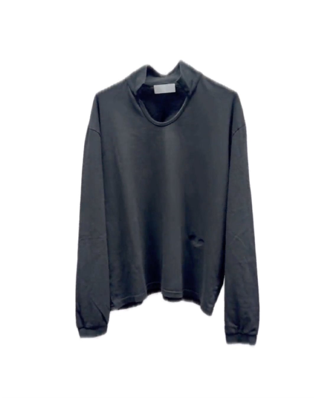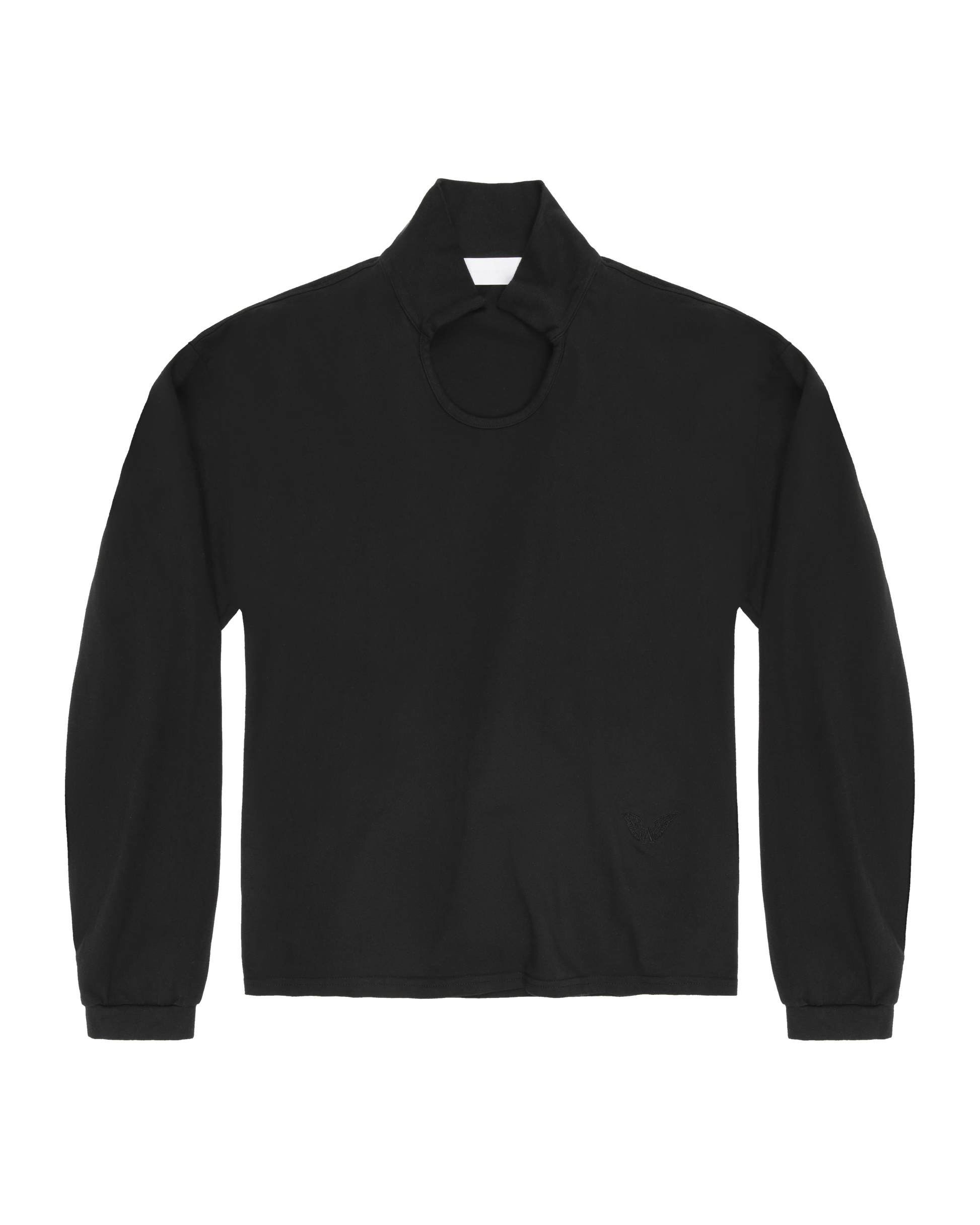Supima Cotton Polo Long Sleeve Shirt, Natural, Standing Collar With Scoop Neck